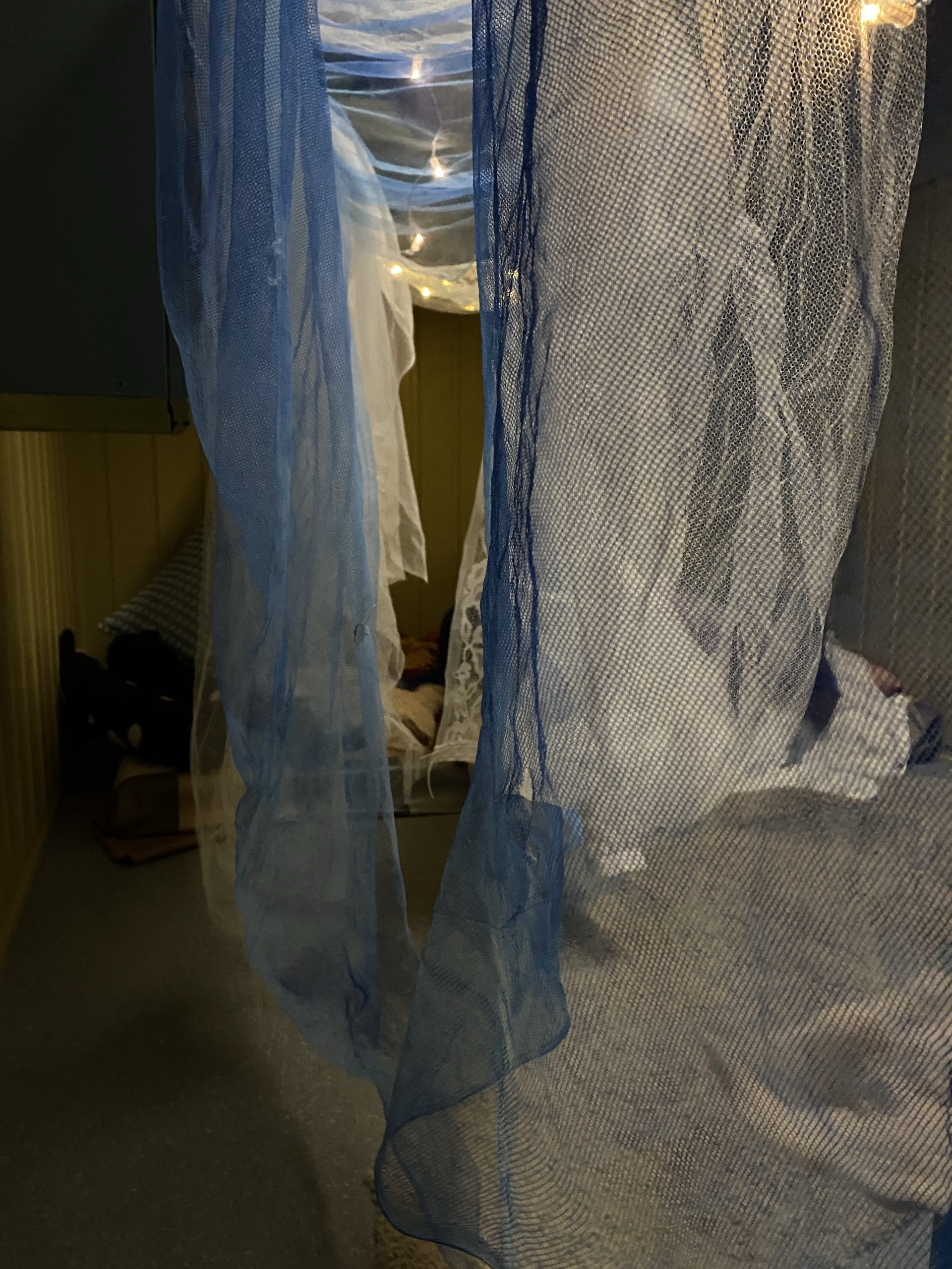 Det er tidlig på morgenen og to pedagoger iscenesetter rommet. Gjennom prosessen med ulla har vi observert gleden over å være inni noe mykt, gå under noe, gjemme seg og å møte en venn tett i myke elementer. Rommet fylles med tyll, ulike typer stoff, lysslynger og ull. Bordet er snudd opp ned, og rommet […]