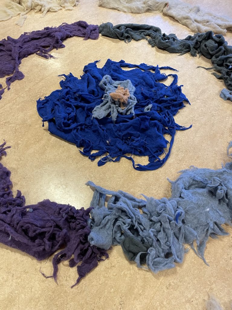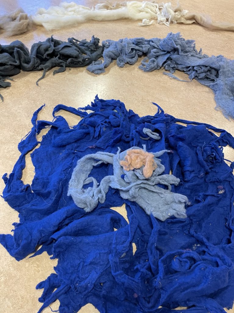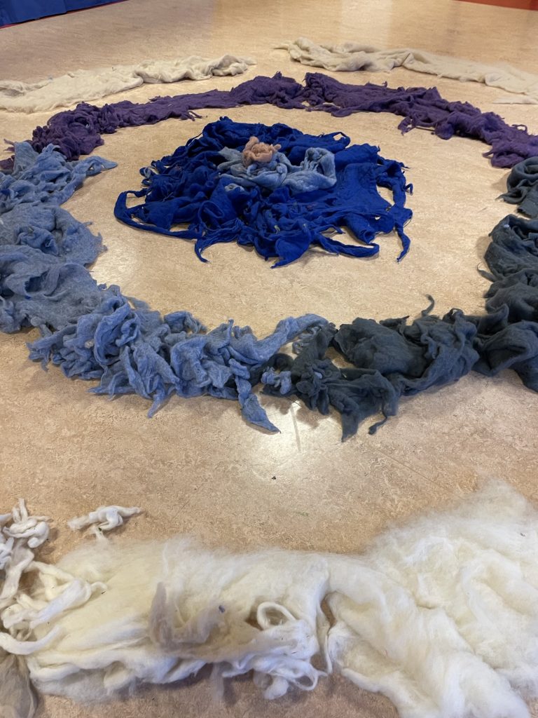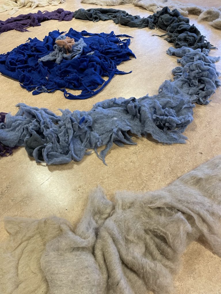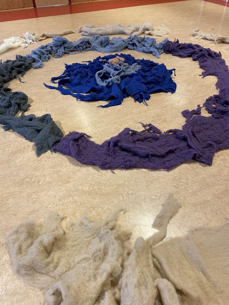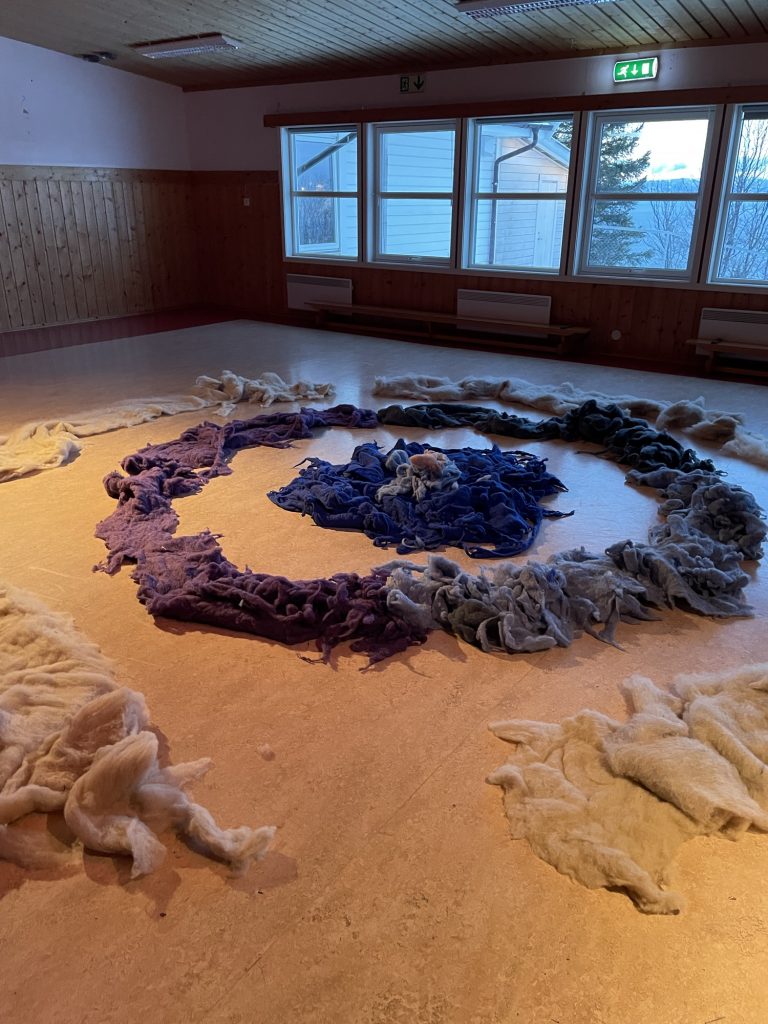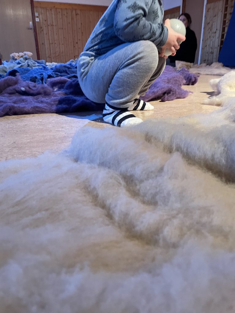 Storsalen er iscenesatt for første gang for ett-åringen. Ull i store runde formasjoner dekker gulvaflaten. Døren til storsalen åpnes, og små rolige steg trer inn i rommet. Lyset skinner ned på de mørke fargene til ulla, og de rolige stegene blir fort til raskere steg. Gledeshylene brer seg utover hele rommet når vi beveger oss sammen. Små hender strekkes mot ulla, et barn legger seg oppi ulla og noen drar den etter seg. Ulla beveger oss alle sammen.