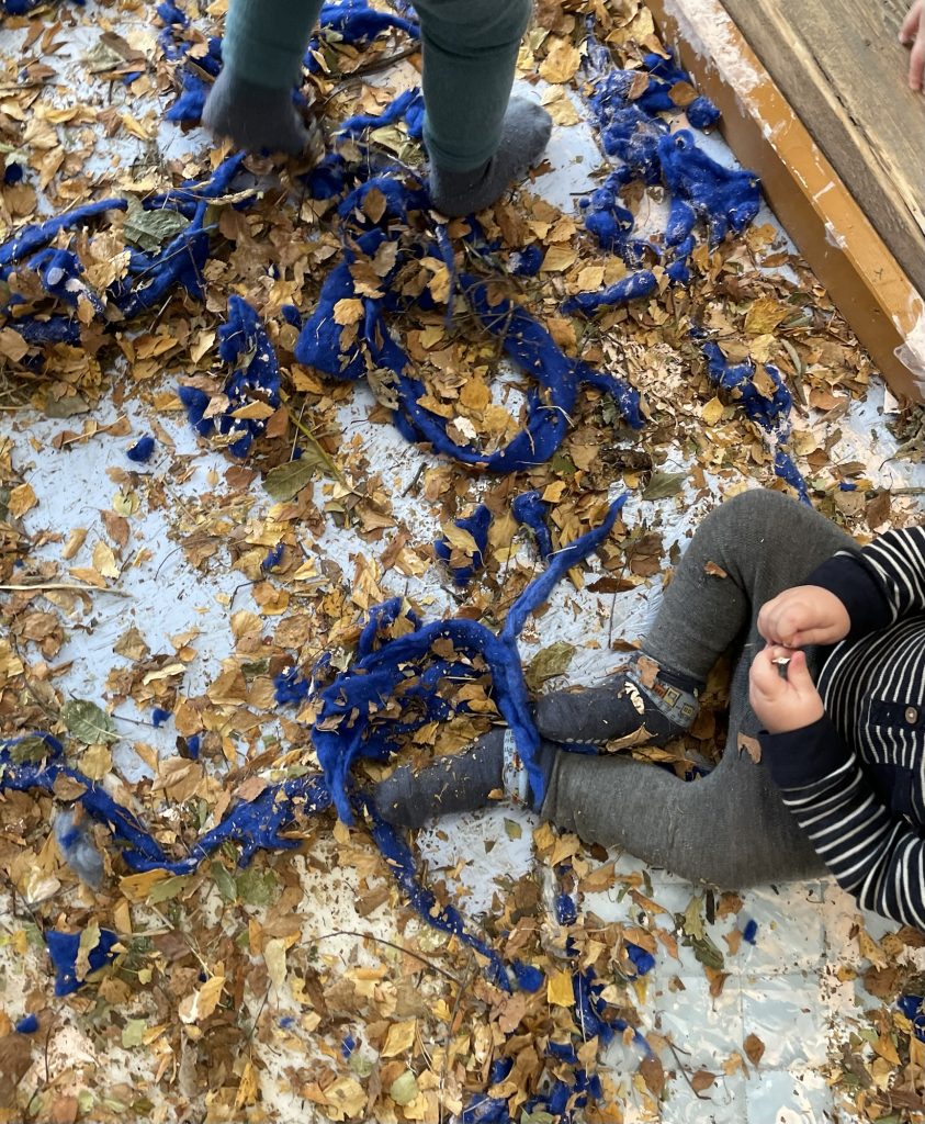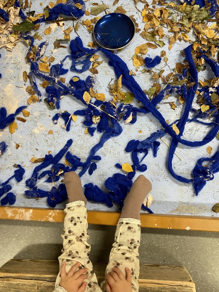 Ettåringens første høst i barnehagen er dager med veksling mellom oppdagelser i inne- og uterommet. Høstløv, regnskyer som gir vann, vind som beveger bladene i lufta, ull og skum – er en del av hverdagen vår. Vi utforsker og lærer med hele kroppen. Vi opplever også at det er en forbindelse mellom innerommet og uterommet i arbeidet. Vi tar med blader inn og skum ut – vi viser at alt henger sammen.