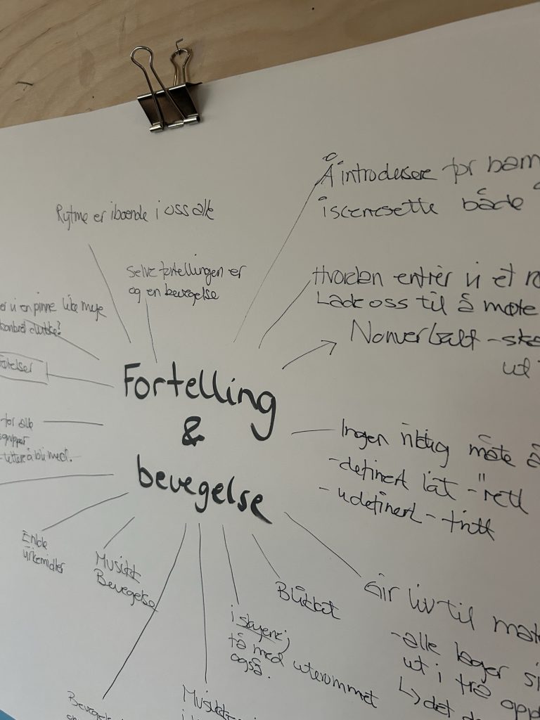 Inspirert av siste arbeidsøkt på Cirka Teater med Anne Marit Sæther i spissen, legger vi opp til en refleksjonsstund hvor vi løfter ordene våre FORTELLINGER og BEVEGELSE. Delingskulturen er viktig for oss, og vi ønsker alltid å invitere flest mulig på huset inn til refleksjon. I dag bruker vi forskjellige rekvisitter og teatralsk musikk som gir mangfoldige bevegelser blant oss.