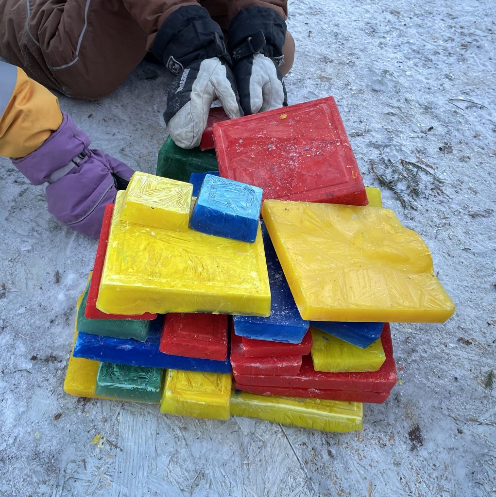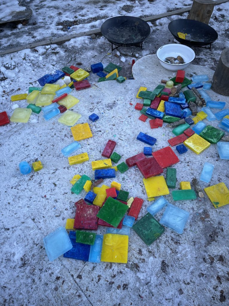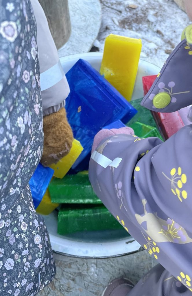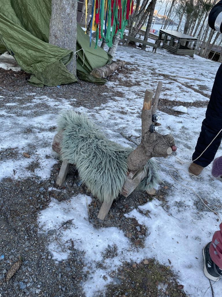 Fargene i samenes flagg brer seg utover uteområdet i barnehagen – rødt, blått, grønt og gult.