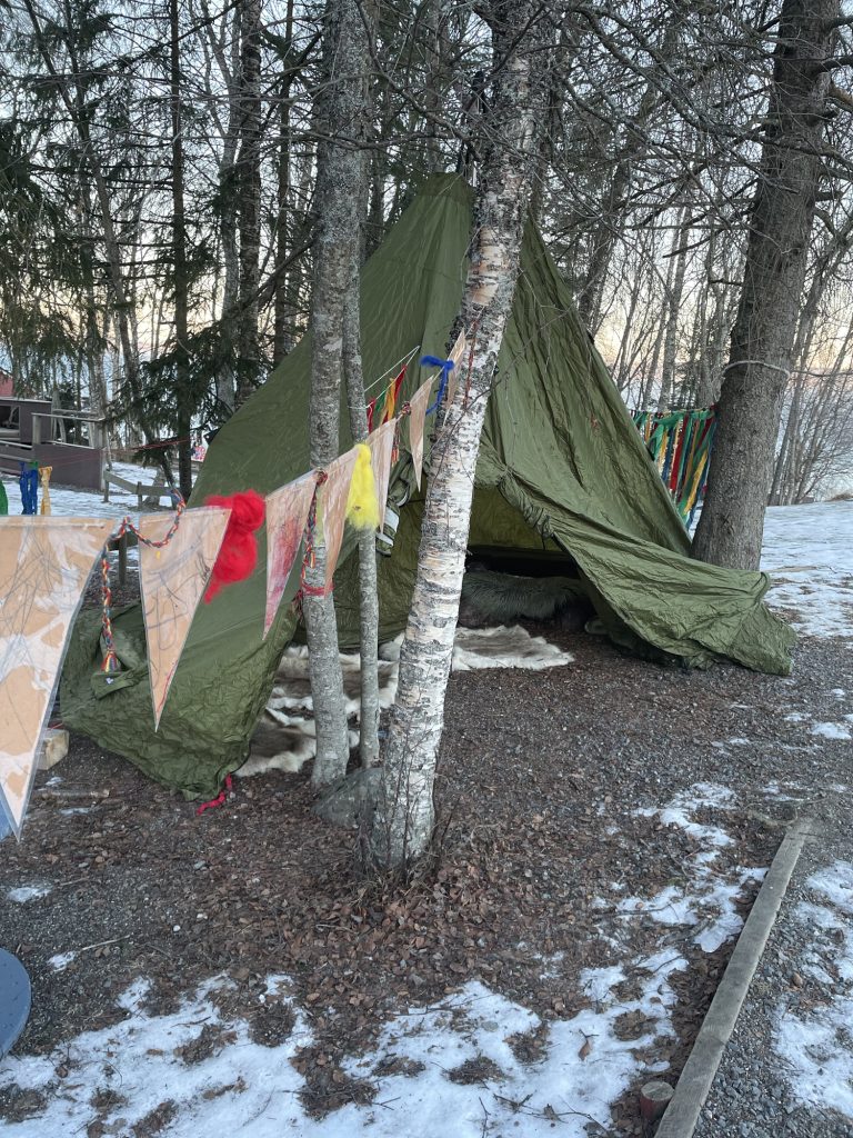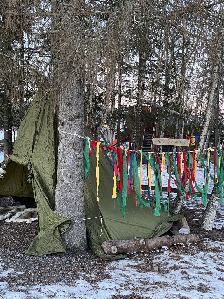 Sammen skaper vi en feststemt dag der hele Planetringen-Vikhammeråsen barnehage er sammen. Alle bringer med seg noe inn til fellesskapet – noen kommer med farget is, noen pynter uteområdet med egne vimpler og et flott teppe i ull, tovet i flaggets farger. Noen har blandet farger og skapt masse isblokker som det dekkes på og lekes med. Rundt bålet i gapahuken serveres hjemmebakte gahkko og varm buljong. Samisk joik brer seg over uteområdet og setter et ekstra fint preg på stemningen. Store og små barn går sammen, hjelper hverandre og leker sammen. Kanskje tar de en tur innom lavvoen eller prøver lassokasting. Som flagget symboliserer, skapes samhold.