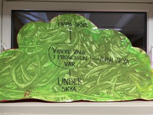 Haugskyer reiser seg som små fjell på himmelen. De er kraftige og tydelige, stadig i bevegelse og i ferd med å vokse. Slik er også Haugskyan i barnehagen – et rom for barna som ikke lenger er helt nye, men som har begynt å strekke seg ut, ta mer plass og prøve seg frem.