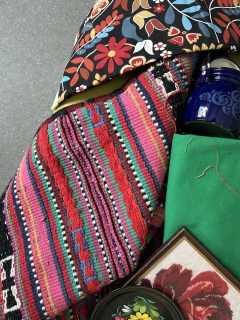 ikoniske elefanter i indisk drakt, hånd-heklede slanger, en grønn hylle med kopper og