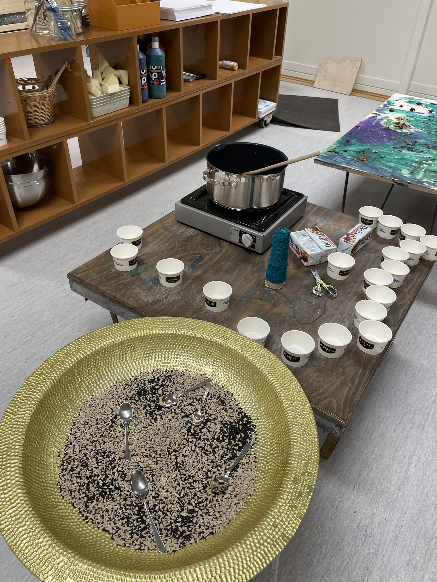 Sanse Dele Glede Klokka er 7:00. Verksted er klar til en arbeidsøkt. Lillebordet hvor vi vanligvis spiser frokost er dekket med noe annet i dag. Utskjærte håndlaget fugler i tre, gran greiner i en vase, solsikkefrø, gresskarkjerner, en skjærebrett, en kniv, svisker, et ark og en tusj. Videre er verksted- rommet dekket med pappkopper, defia […]