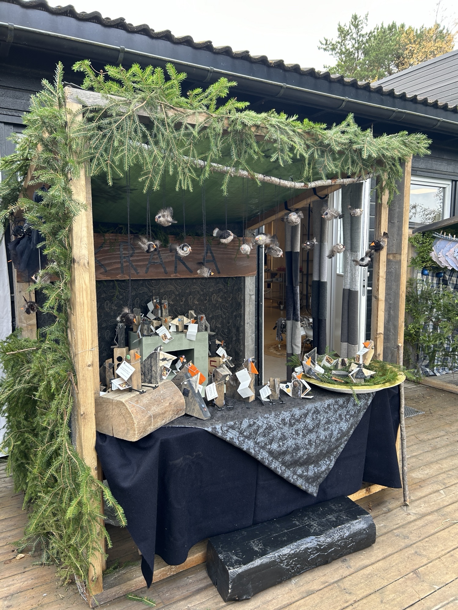 Vi skaper kråker i forskjellige materialer, ull, tre og tyllstoff. Noen til martnasboden, noen for å leke med og noen for pynt i rommet.