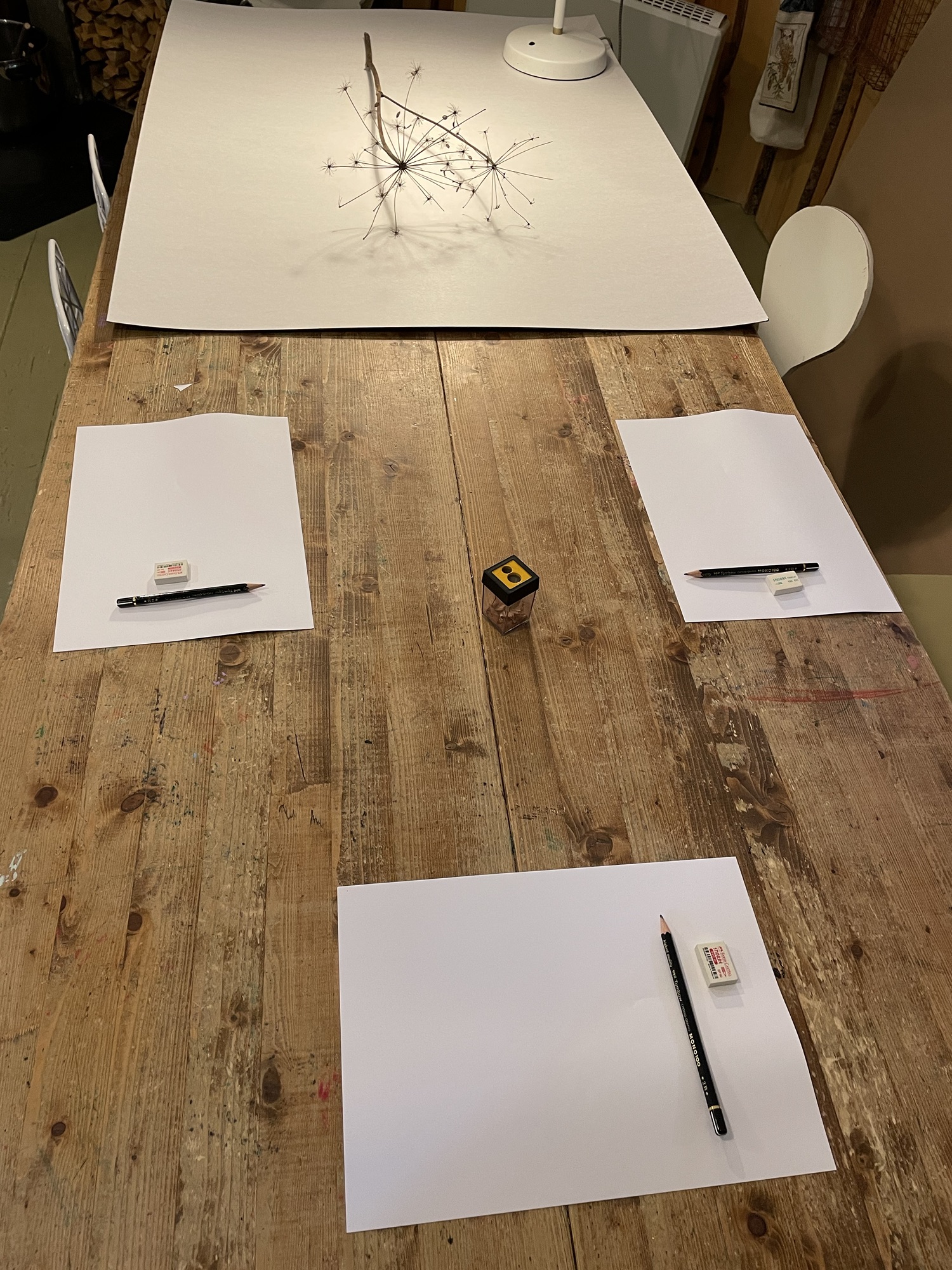 Vi er i en fordypningsprosess mot høstmartna. Løvetannen er vårt tema. Tegning blir vår utrykksform og blyanten blir vårt hovedverktøy. Pedagogens hensikt i denne arbeidsøkta var at gruppa gjør seg nye erfaringer ved å jobbe kun med gråblyant. Gruppens utgangspunkt er forskjellig, men vi tenker at alle som kan holde en blyant, kan føre en […]