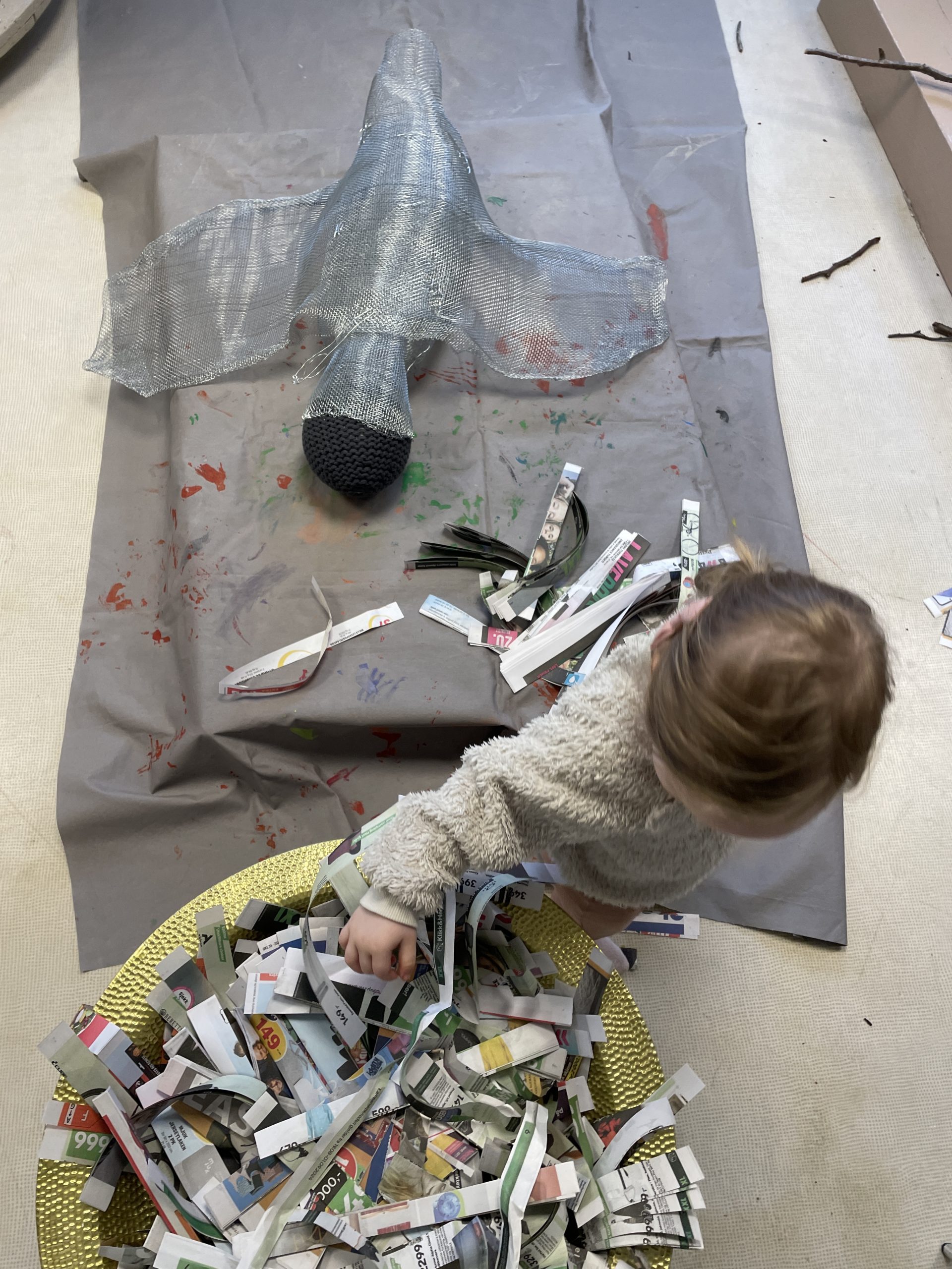 Vi kjenner at prosessen trenger støtte fra rommet. Hva kan vi tilføre i det fysiske miljøet slik at det er synlig at vi jobber med kråka for andre? Pedagogene foreslår at vi kan lage en stor kråke som kan bo på sol sammen med oss. Jaaa! Så er vi i gang… Arbeidslaget består av ulik […]