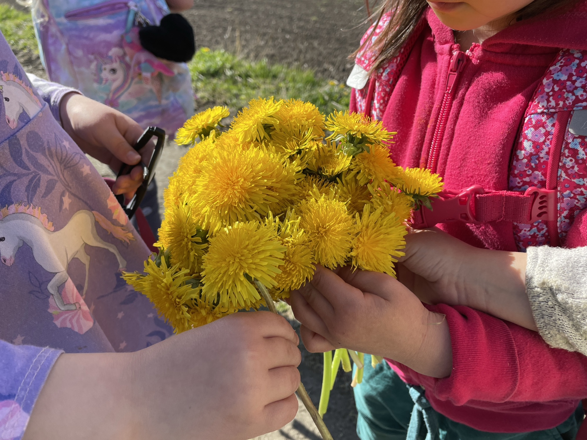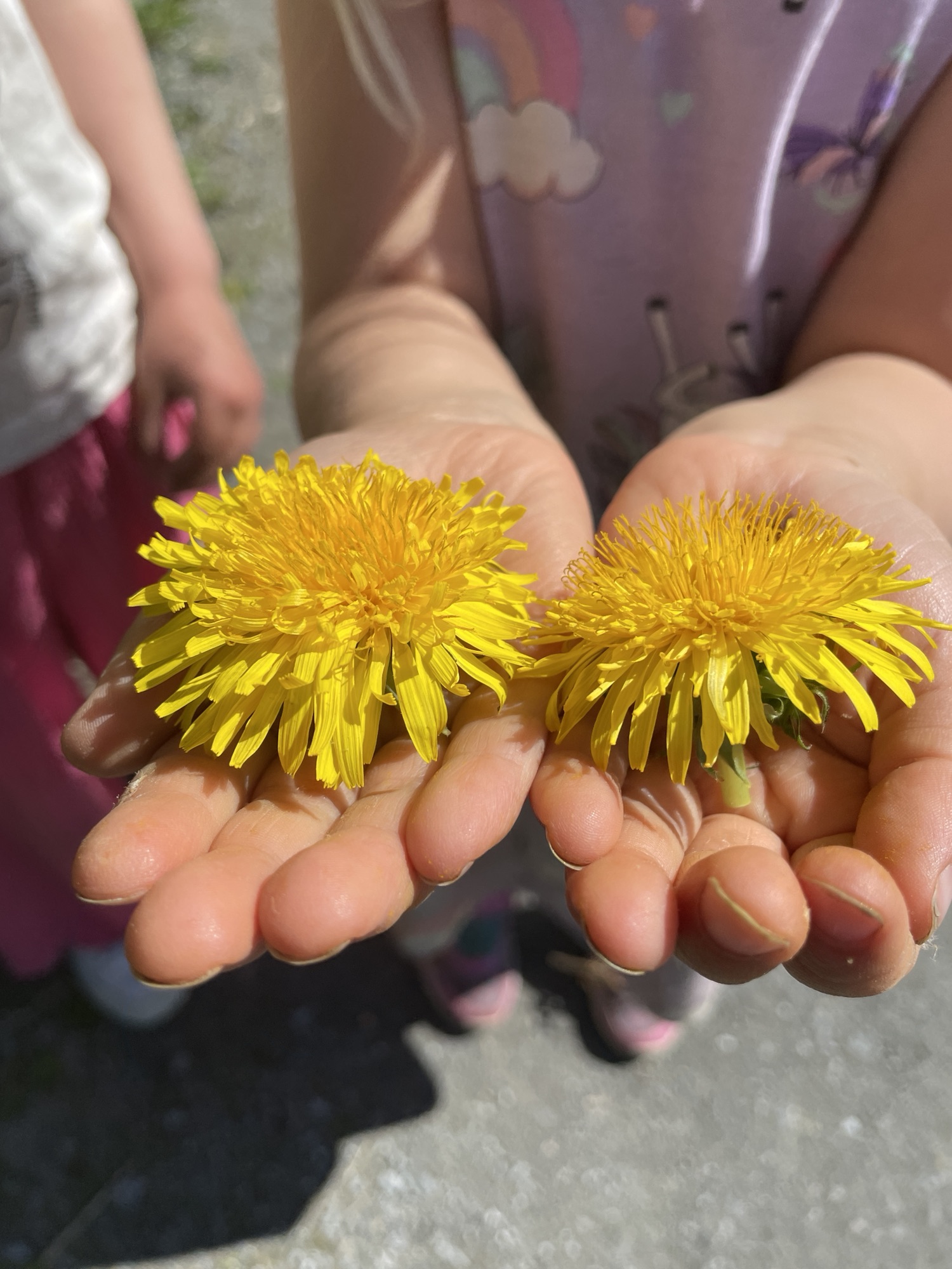 Dagen starter med en spontan utestart for gruppa som skal begynne på Måne etter sommeren. Dekket for fellesskap, utforsking og dialog. Med våren kommer flere oppgaver ute. Vi vil gjøre barnehagen fin til sommeren. Det føles godt å jobbe sammen.