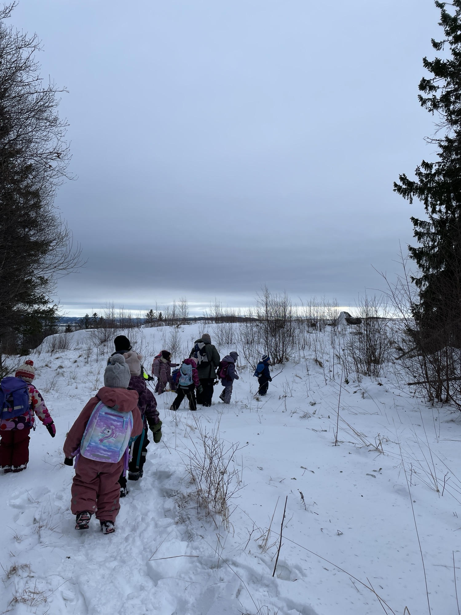 En arbeidsøkt er straks ferdig og vi sitter å planlegger vårt neste trekk. I dag skal vi ut for å lette etter regnbuen. Først inviterer pedagogene til dialog; Hvor skal vi finne regnbuen?, spør pedagogen. «Vi må gå opp til åsen, helt opp til åsen». Hvilket spor ser vi etter? «Blått, rødt og alle fargene […]