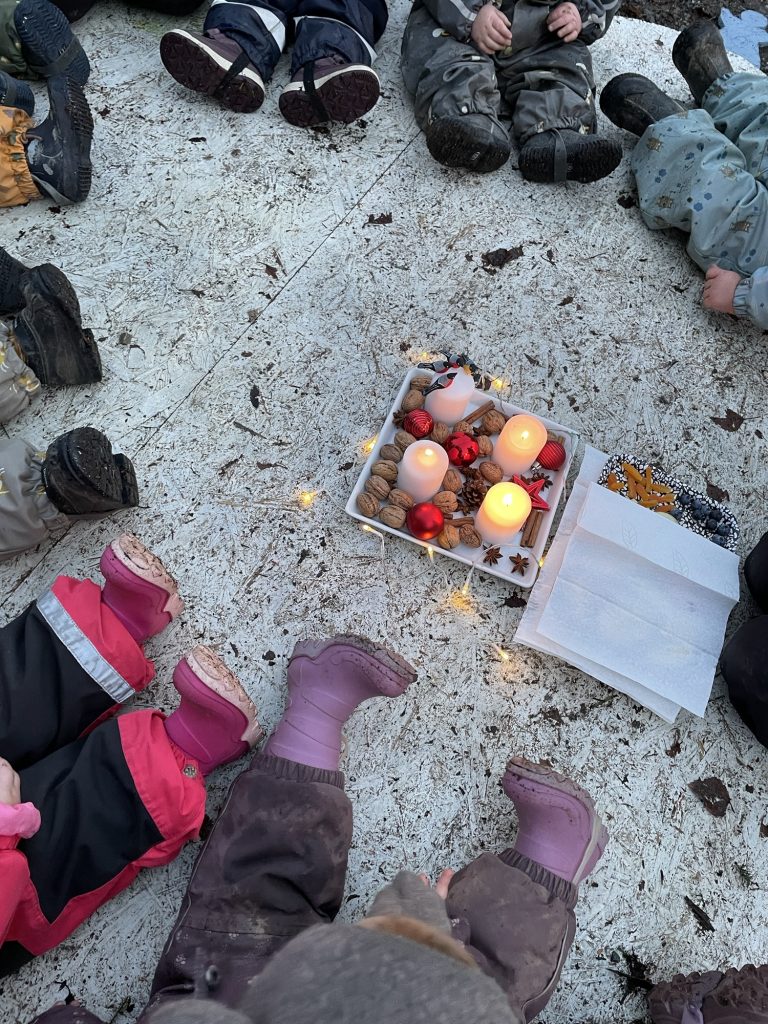 Vi inviterer inn til en stund med nye smaker, lukter, sanger og bevegelser. Adventsstunden kan være planlagt eller oppstå spontant både inne og ute. Når vi løsriver oss fra faste rutiner og klokkeslett kan det oppstå magiske øyeblikk på barnas premisser.