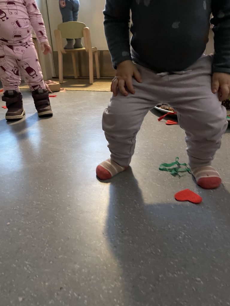 Når vi synger «på låven sitter nissen» kommer de ulike uttrykkene tydelig frem. Noen vil sitte på et fang og, andre ved siden av en venn. Noen vil danse og bevege seg i hele rommet. Det er barnet som står i senter, og med pedagogene rundt som støtte.