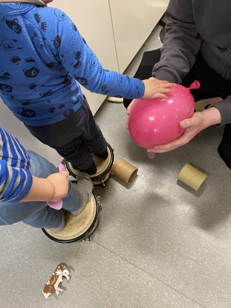 Vi kjenner på, smaker, klatrer oppå, holder i, sitter på, kjenner at det smelter i hånda. Barna beskriver det de kjenner; kaldt, hardt, tungt, glatt og bløtt. Språk og begrep kommer naturlig inn i prosessen med is.