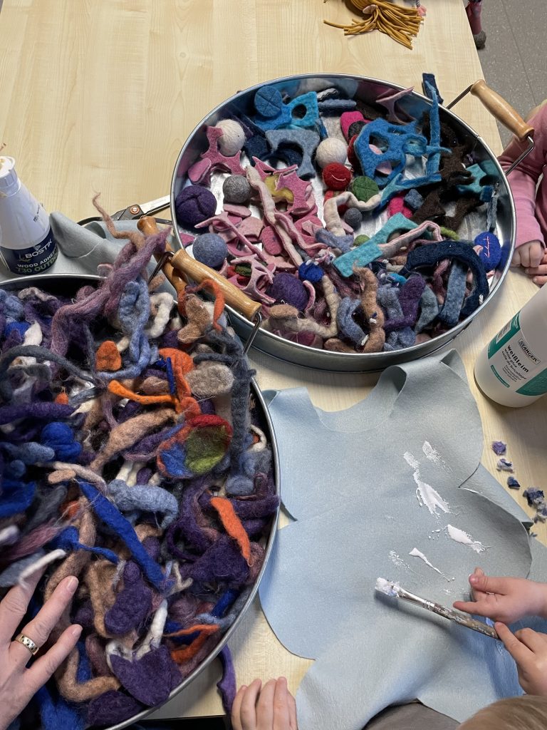 Personlighetene kommer tydelig frem i de ulike kostymene. En gutt som liker å bygge, lager en konstruksjon oppå kostymet sitt. En jente som liker rosa velger ut den rosa pynten. Og et barn som er opptatt av de små detaljene, plukker ut småbitene av ulla. Vi peker, forteller, velger og ser på vennene våre