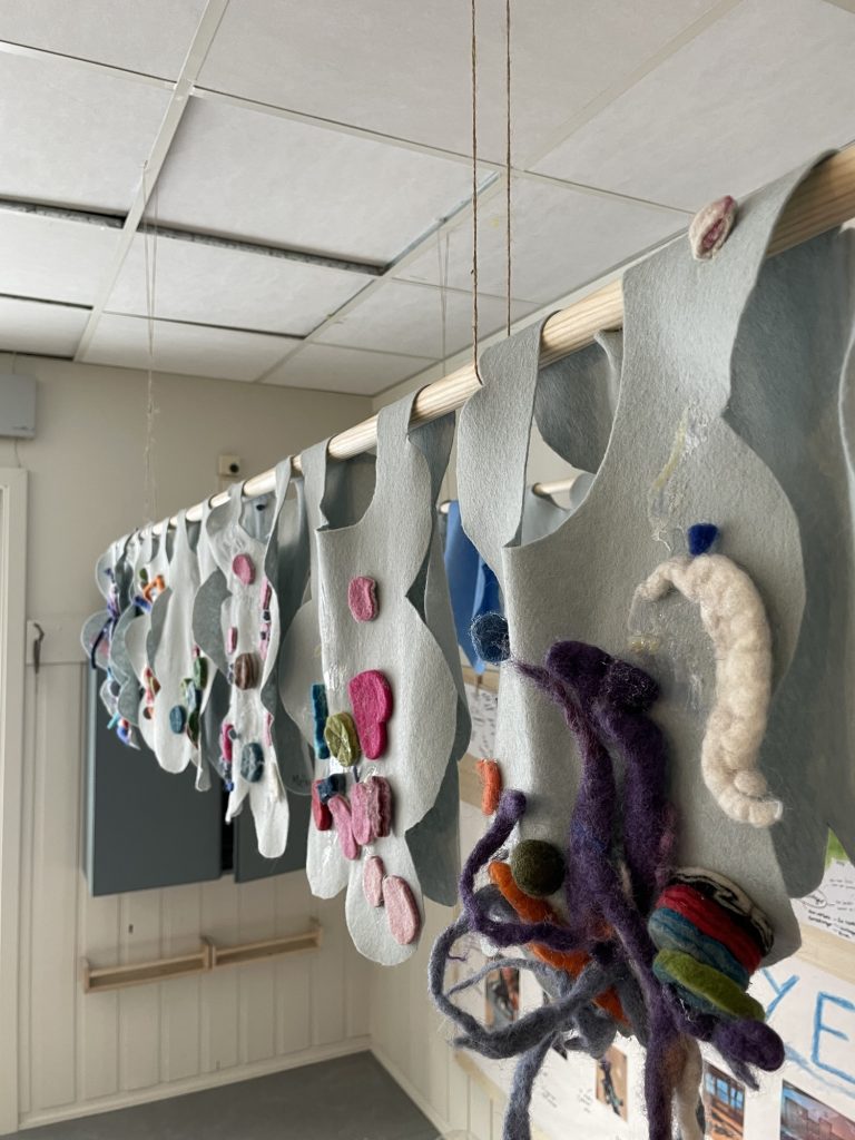 I arbeidsstunden kjenner vi på barnas stolthet, og vi tror de får et eierskap til kostymet sitt. Vi kjenner også på fellesskapet når kostymene henger i rommet nær oss, og gjennom samtalen gir vi det mer verdi. Den blå skybasen alle har fått forbinder oss sammen som gruppe her på Fjærskya.