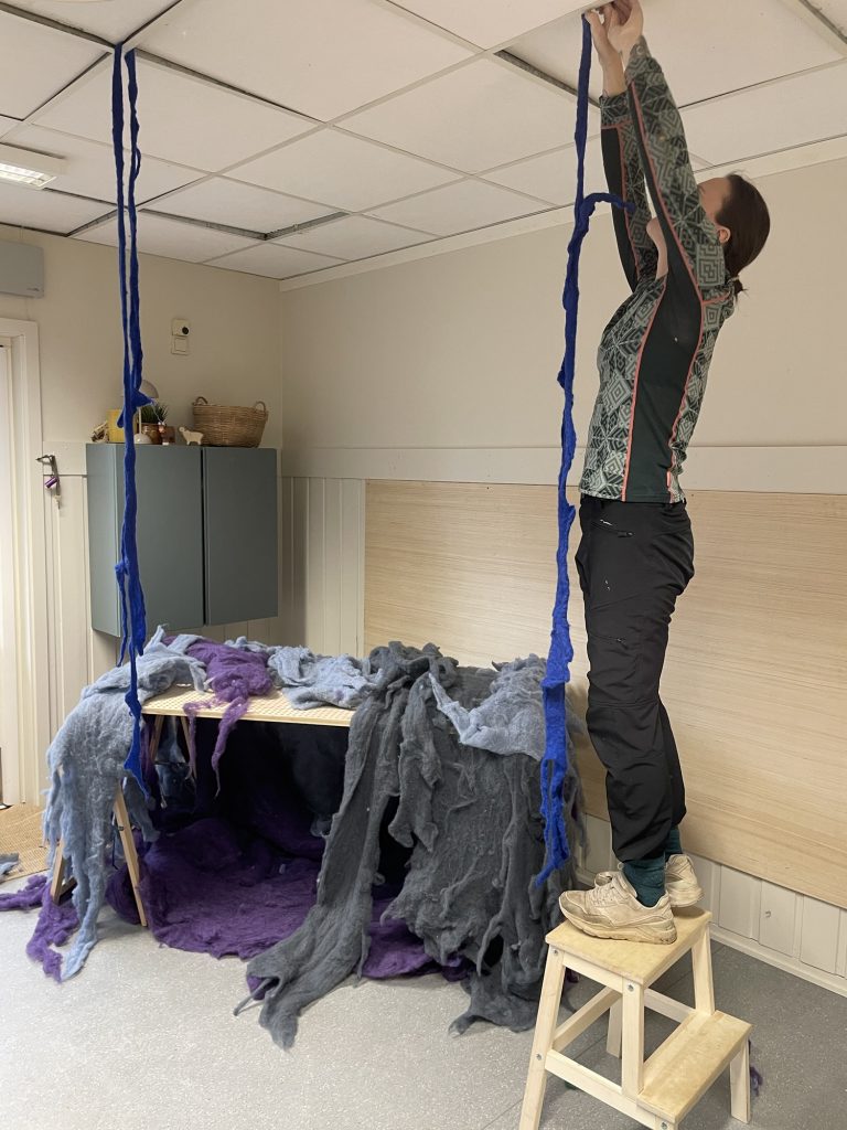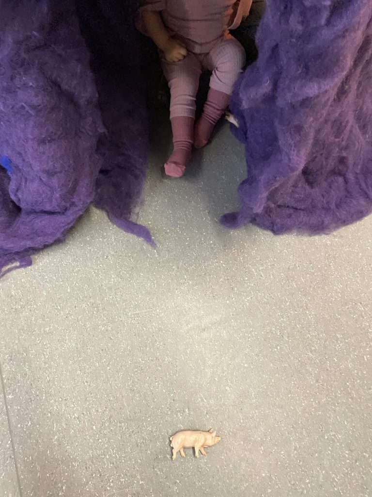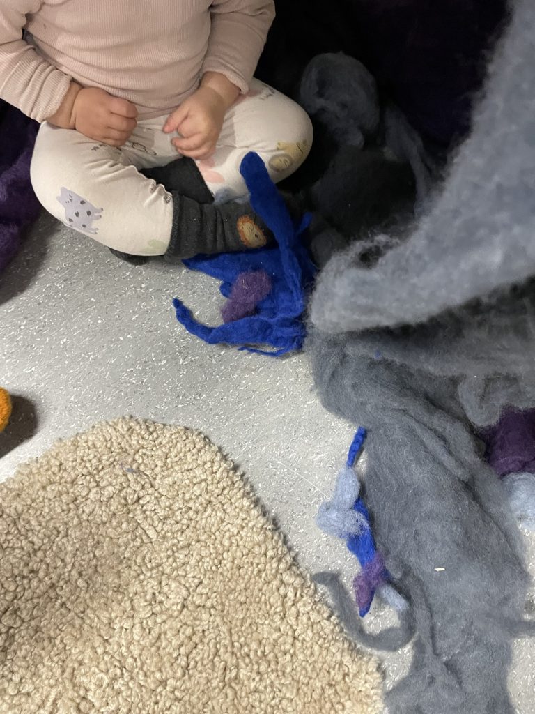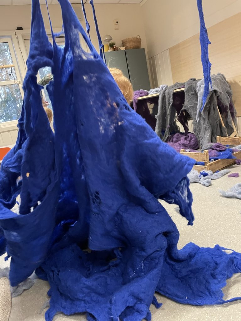 Pedagogene har reflektert rundt når er det vi går foran, og når trekker vi oss tilbake? Når trenger ettåringen støtte i leken og når har de en lek der vi blir overflødig? Etter hvert som vi har blitt kjent med ulla, materialene og hverandre, har vi sett at barna har tatt mer initiativ til leken. Barna finner hverandre og materialene på egen hånd – og de inviterer hverandre inn.