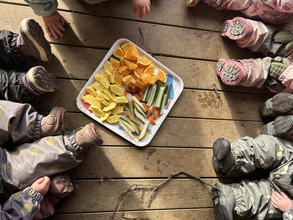 Vi samles rundt bordet på avdelingen, på kjøkkenet eller kanskje i en ring på gulvet. Andre ganger har vi piknik, går på tur eller samles på skyen ute.