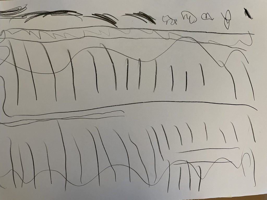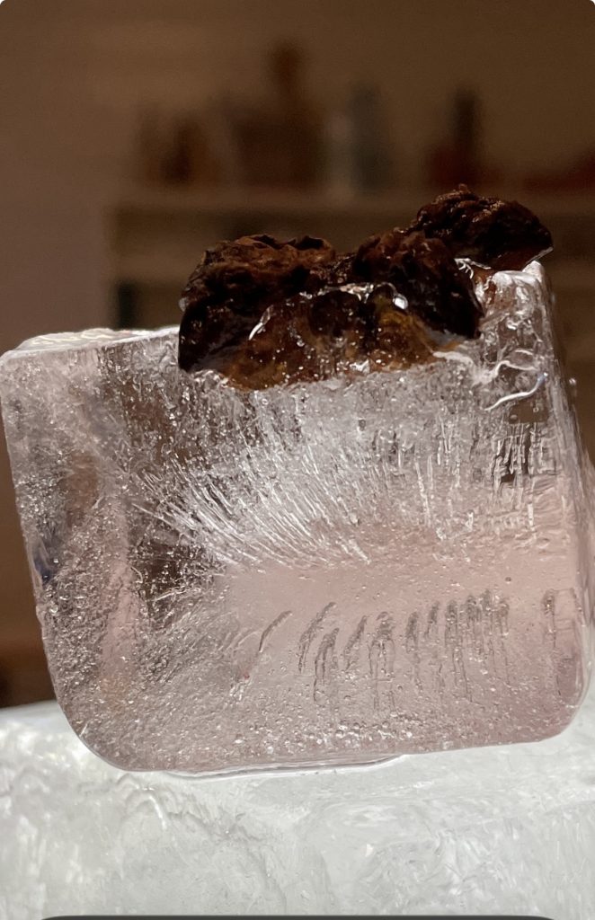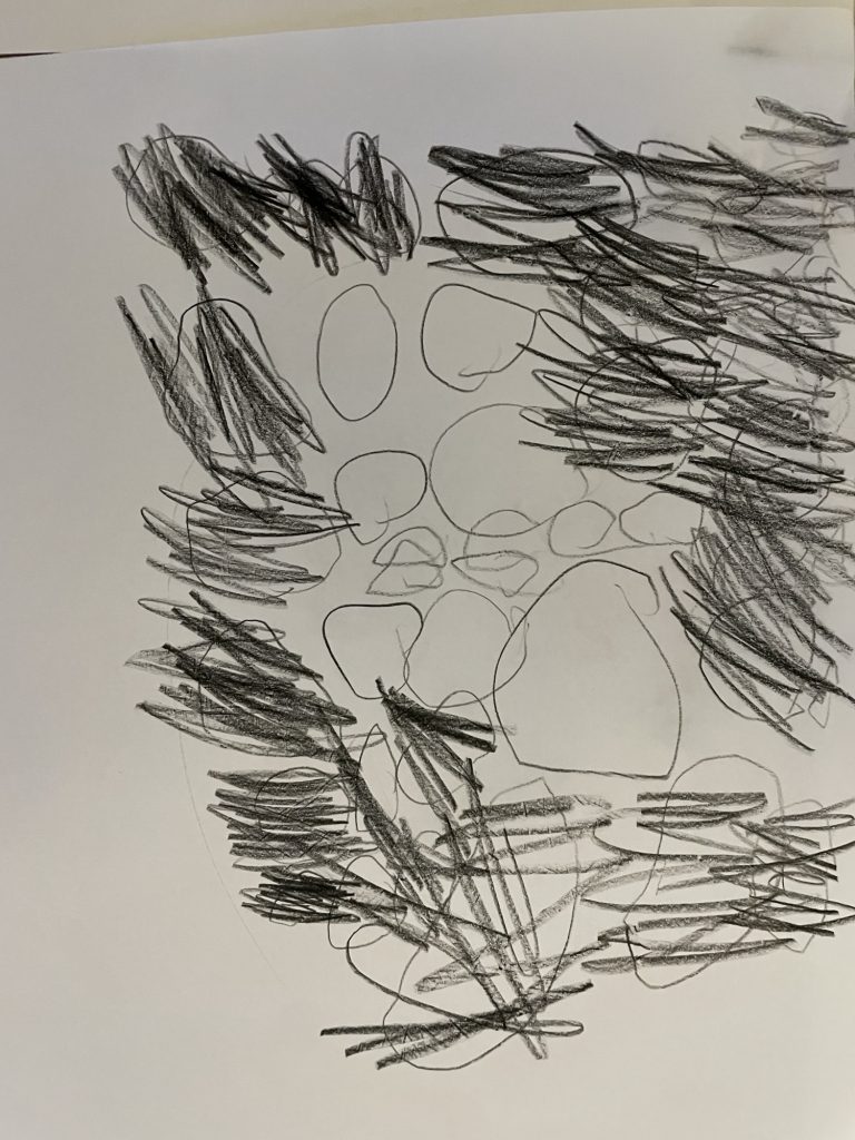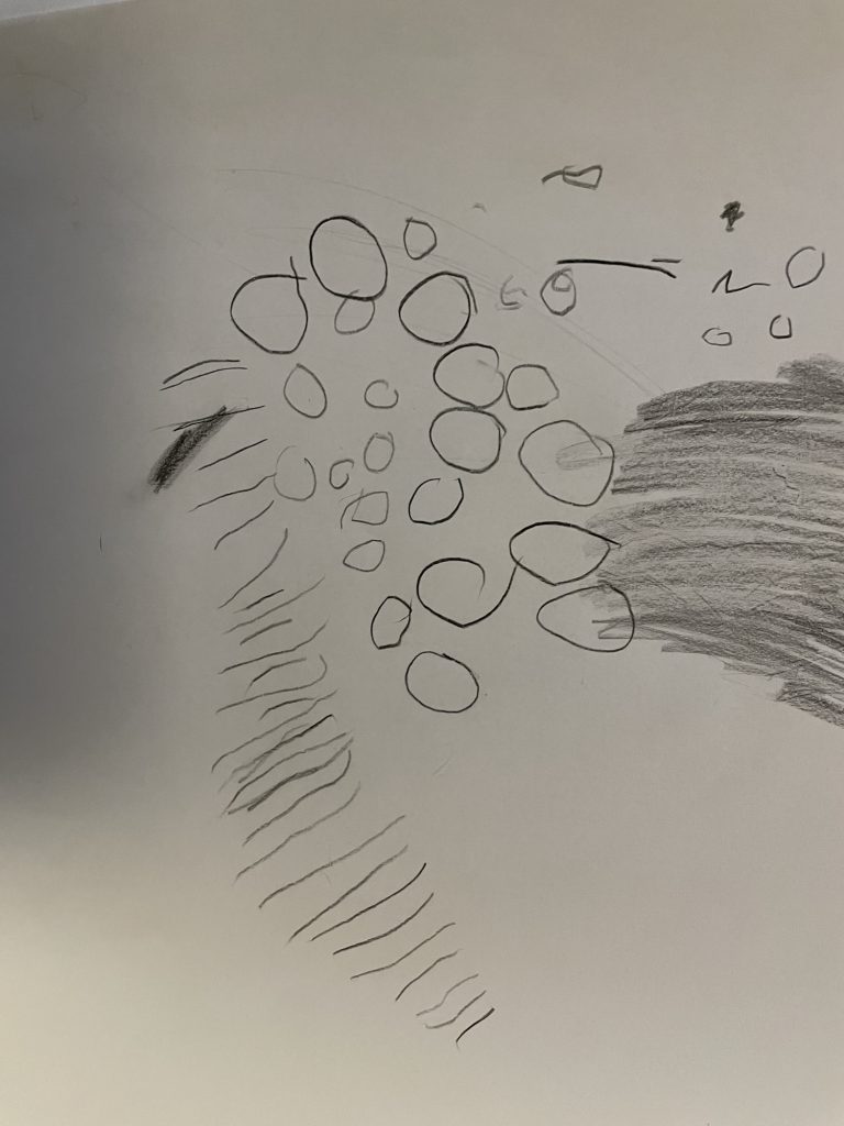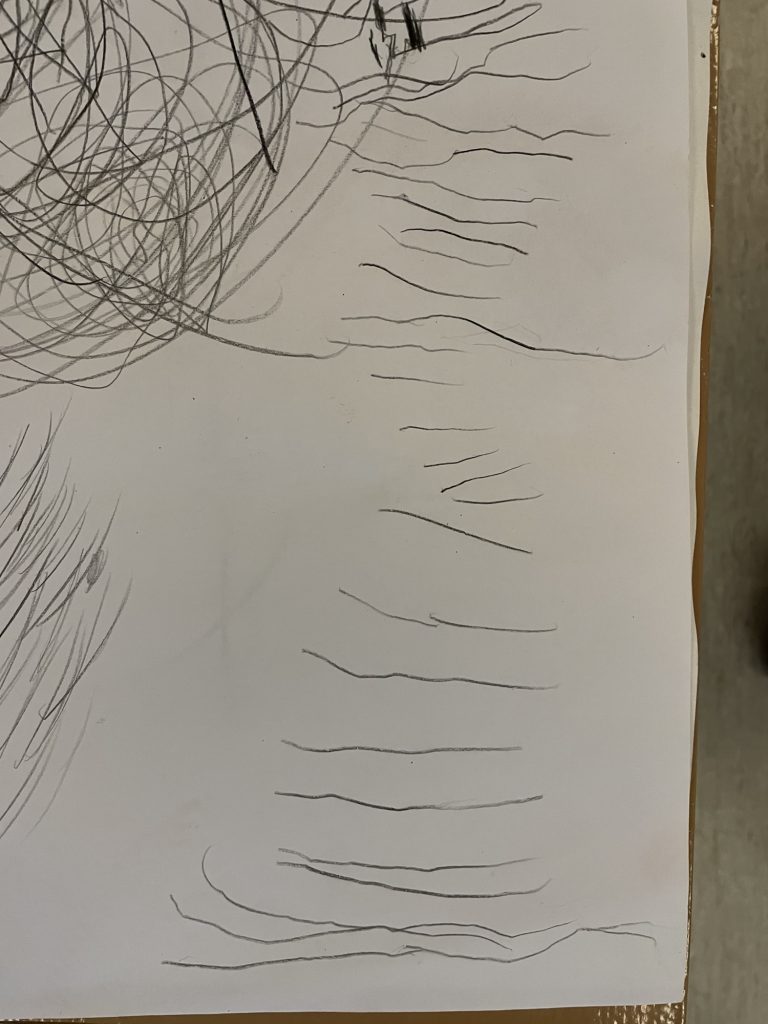 I dag tok vi frem lysbordet, isbiter vi laget tidligere i uken, et ark i A3 størrelse og svart blyant. I tillegg bruker vi telefonen som en digital forstørrelsesglass hvor vi kan se nærmere på isen.