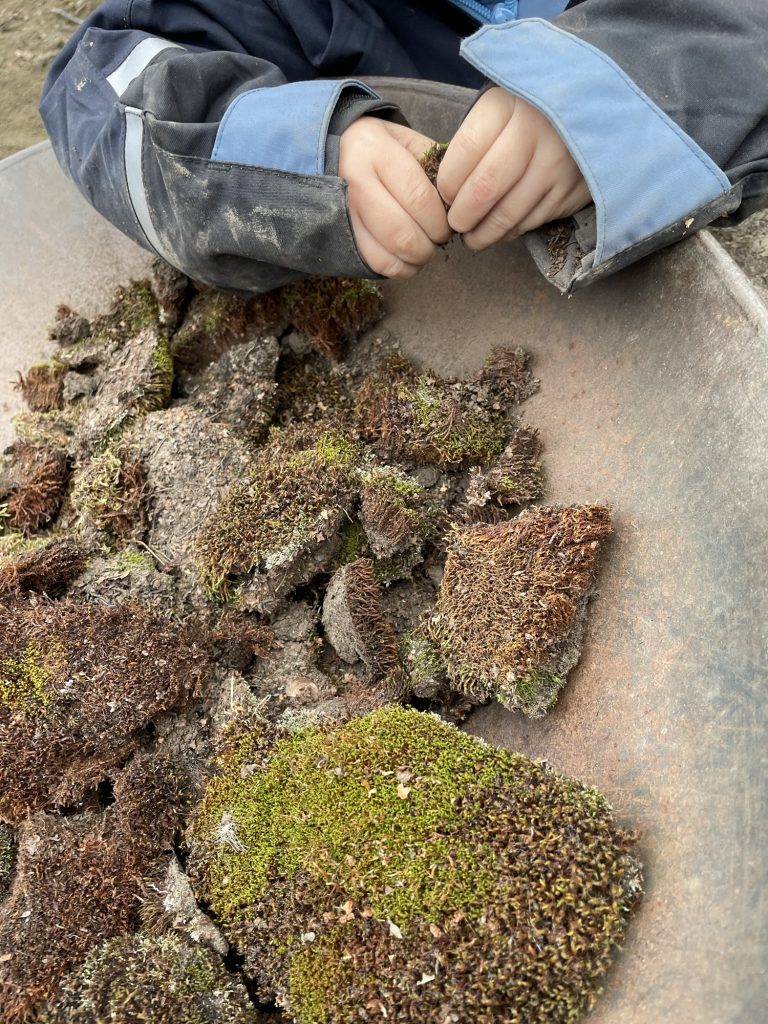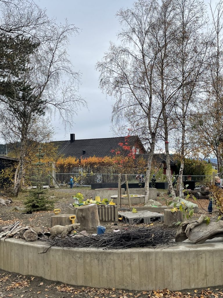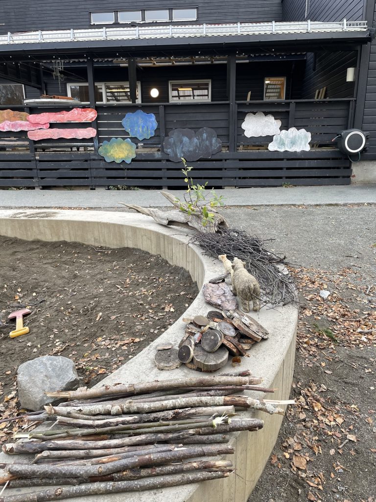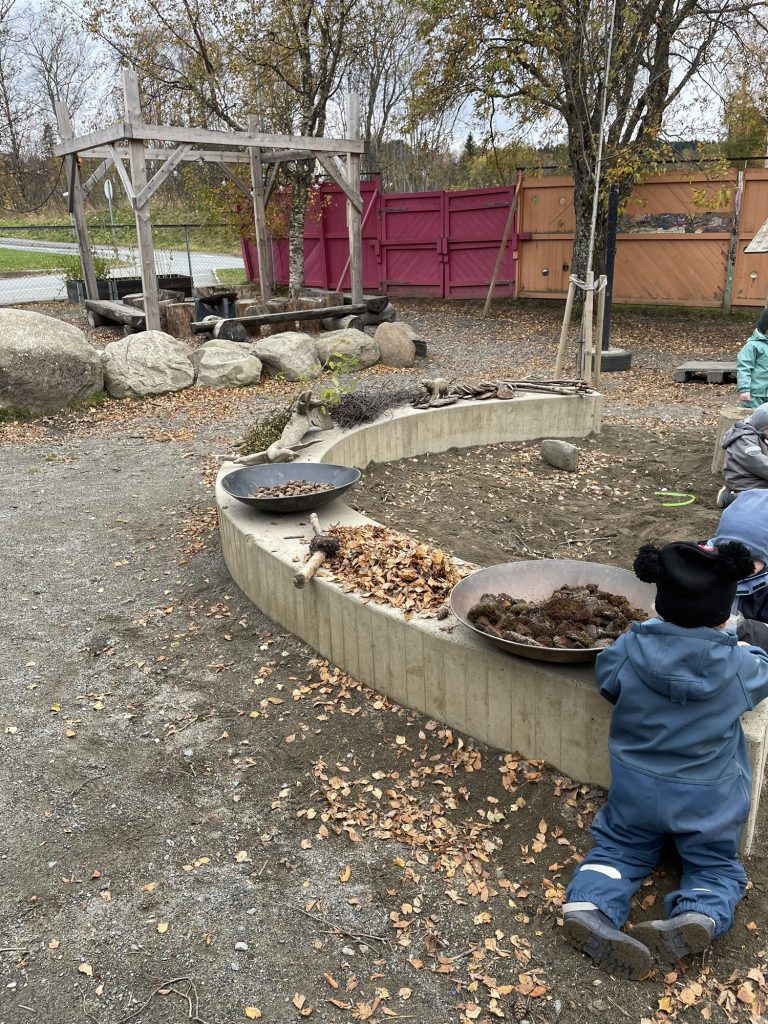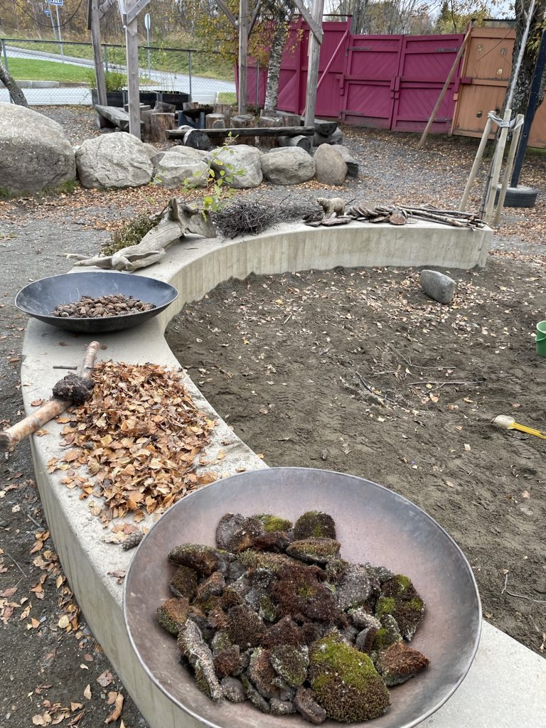Rukleskyan dekker på betong bua med materialer som høsten byr på.