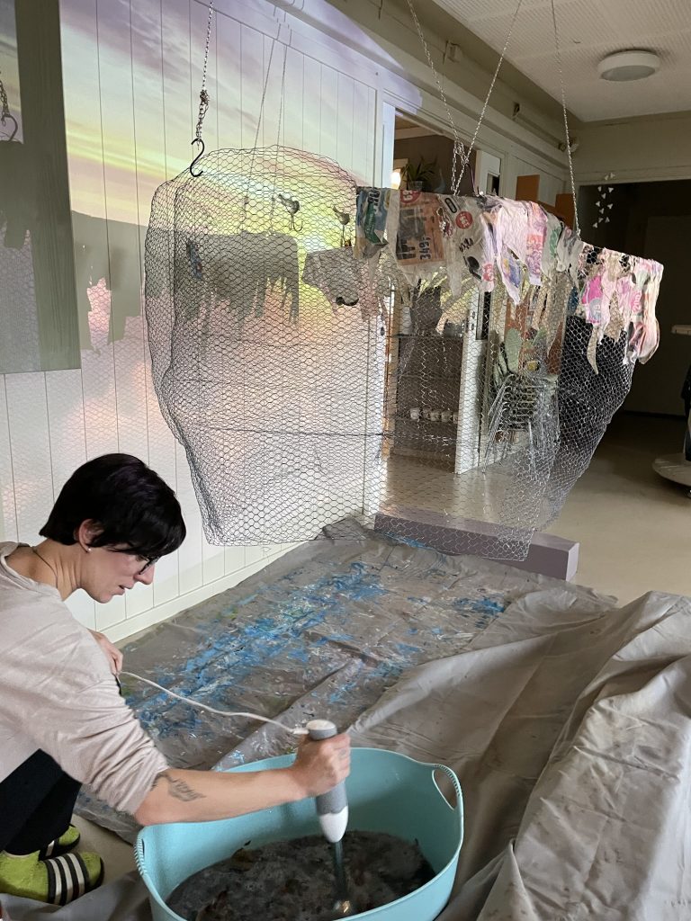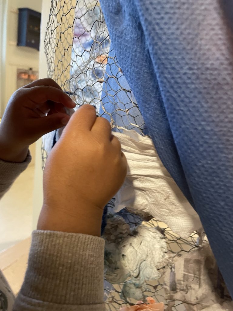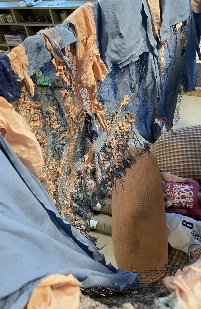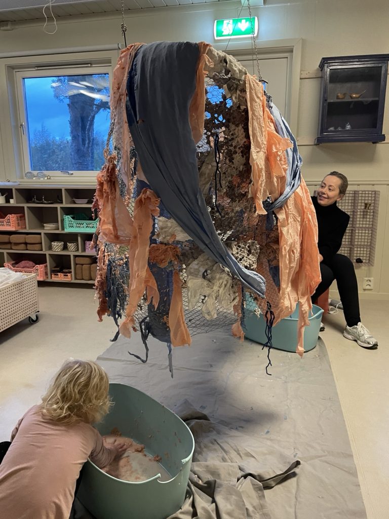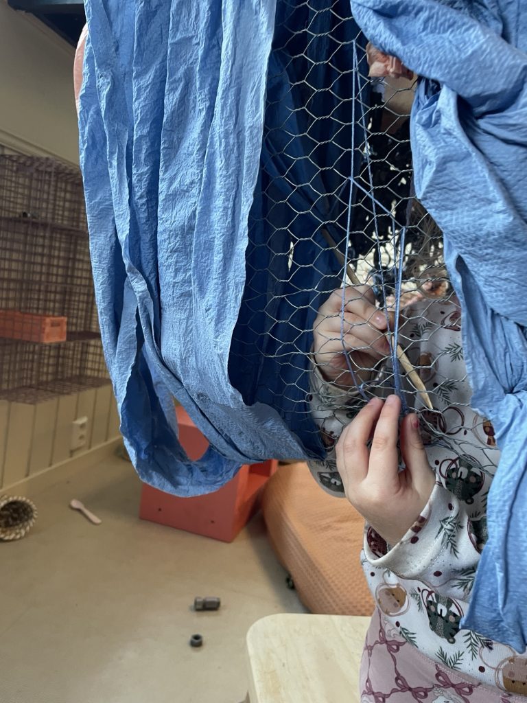 Gjennom denne høsten har vi jobbet med å bygge lag. Skyen vår har vært vår felles. Alt begynte når vi tok hønsenetting på plattingen og spurt barna: «Kan vi skape en sky?»