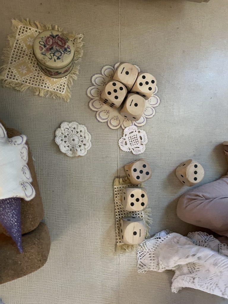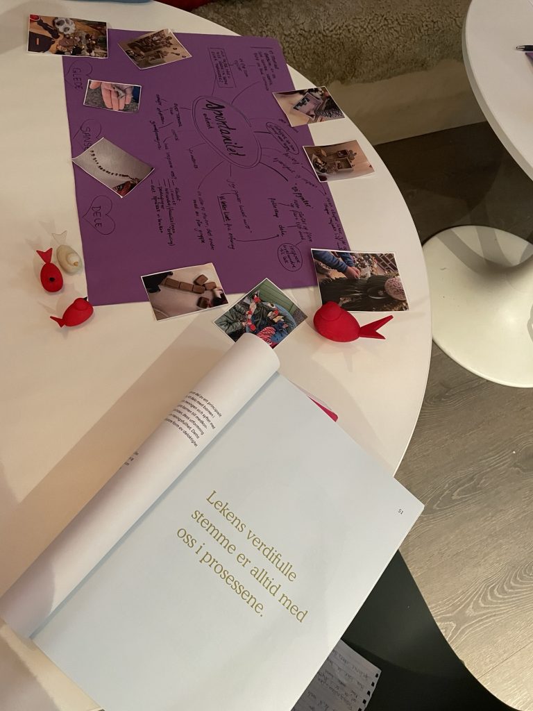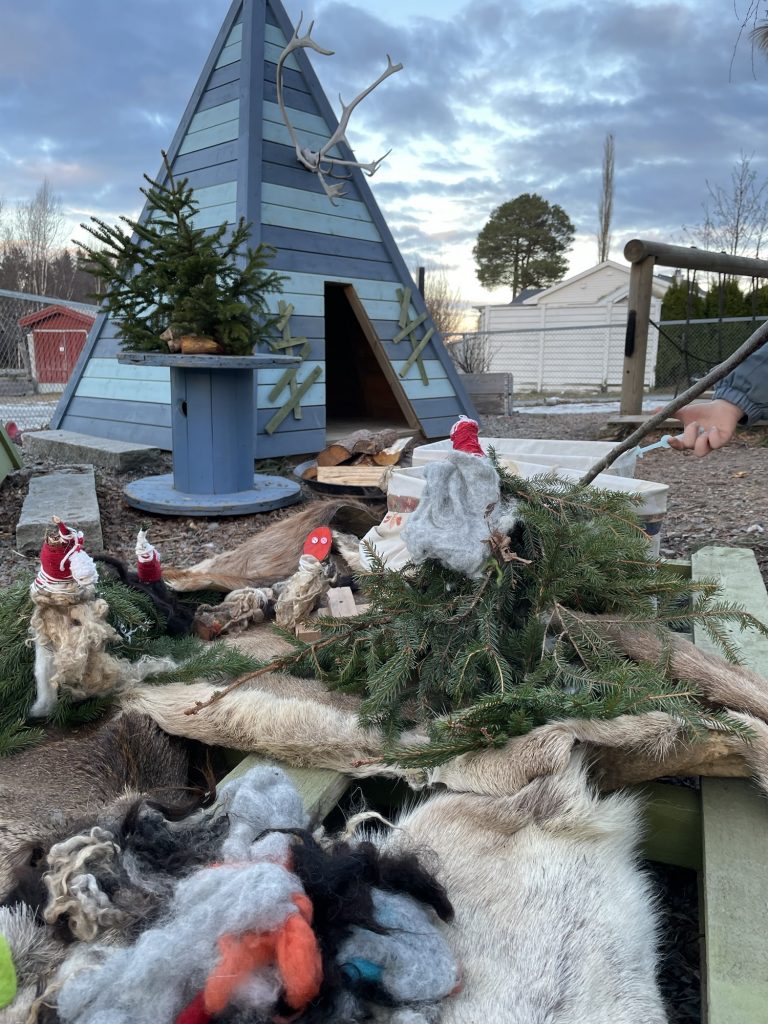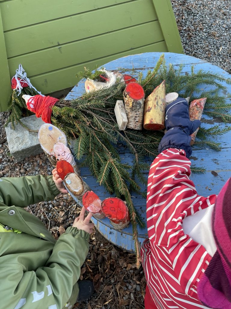 Et uttrykk som ofte har dukket opp i førjulstiden på Rukleskya :«Vi pynter». Noen har begynt å pynte med materialer som er i rommet og det har vært samlende. Kreativiteten og ytringsfriheten er noe som har kommet frem under disse møtene med materialer. Den spontane leken har skapt respekt og kjærlighet, til materialer, til rommet, og til vennene.