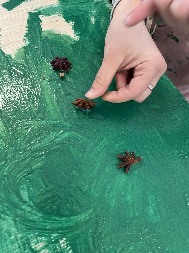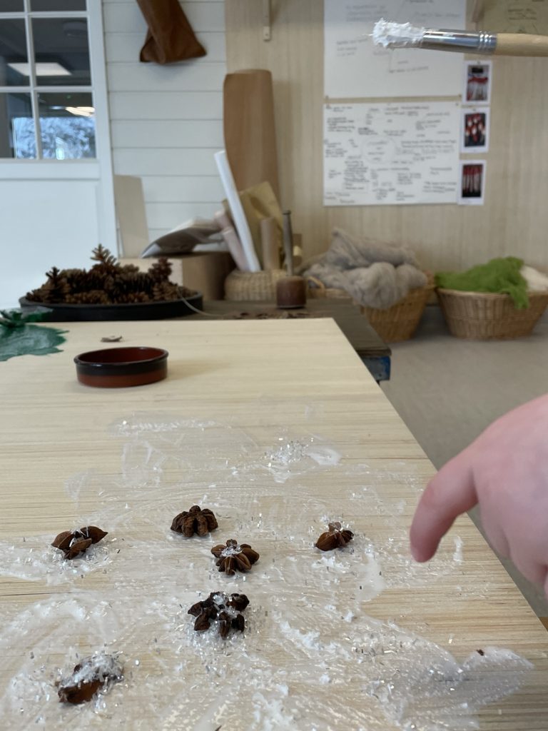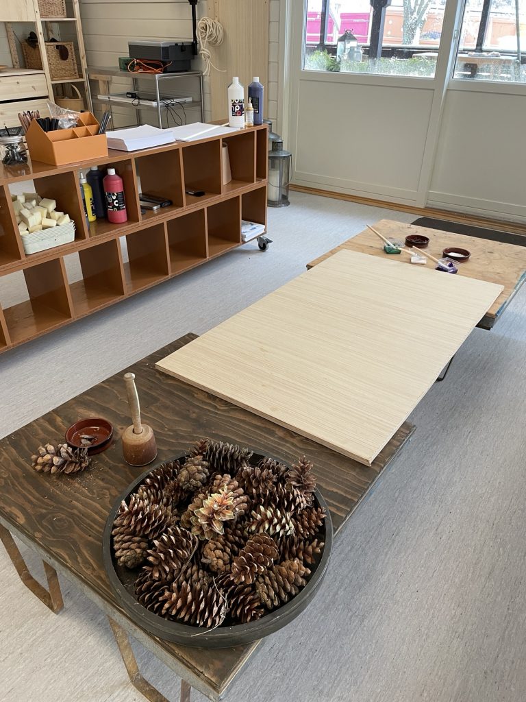 Verksted skal være et rom for å skape. For eksempel, lage nisser av pinner, lykter, leker vi kan ha i leken ute og inne. Vi ser for oss at dette blir et rom hvor vi jobber i mindre grupper. Skaper sammen og lager ting. Samtidig et rom hvor vi kan fordype oss og se nærmere på ting. For eksempel, hvordan ser snøkrystaller ut? Kan vi lage dem av leire? Kan vi tegne dem i detaljer?
