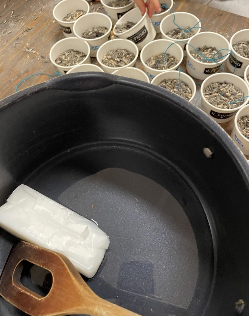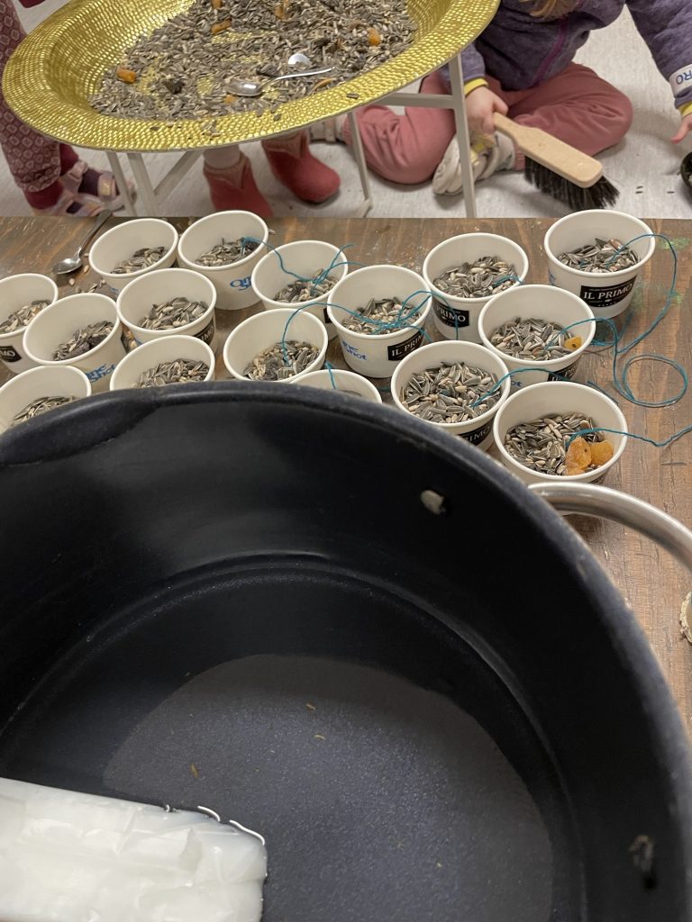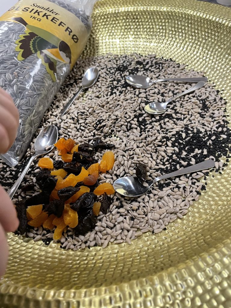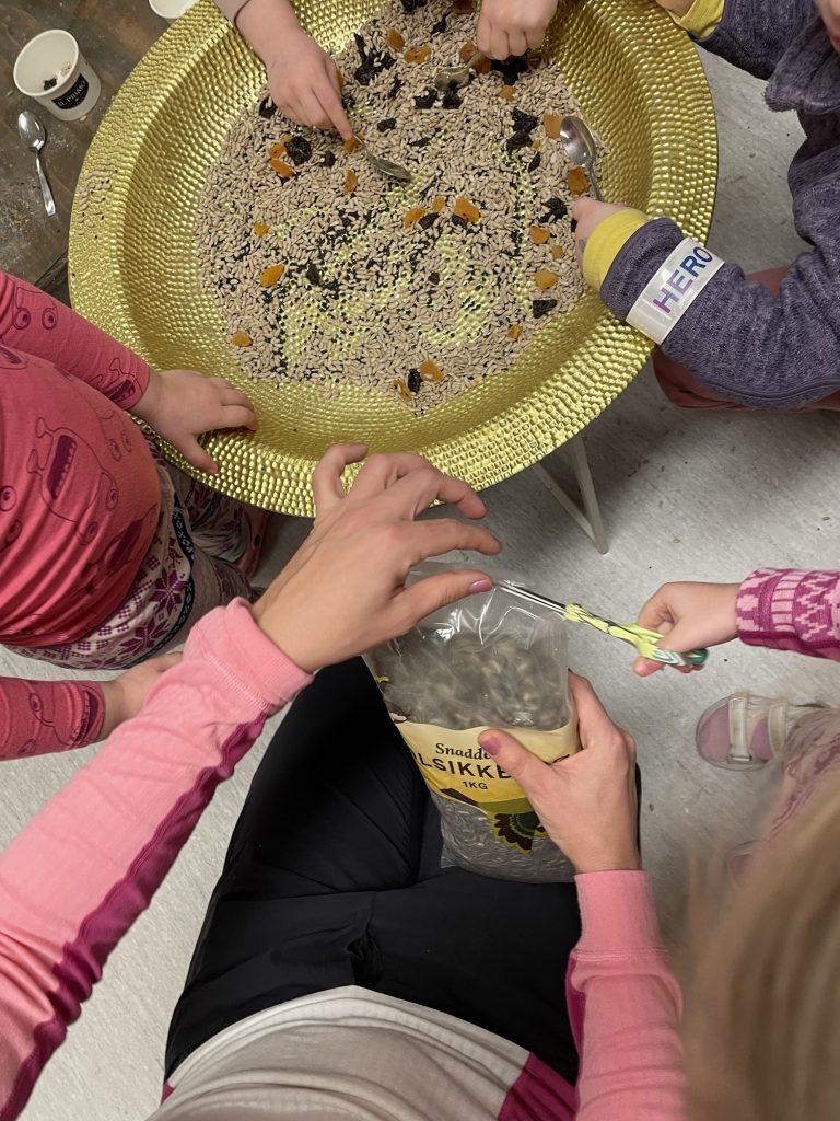 Nå må vi vente til fettet har stivnet før vi får henge fuglemat opp.