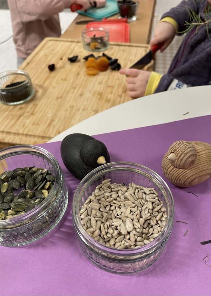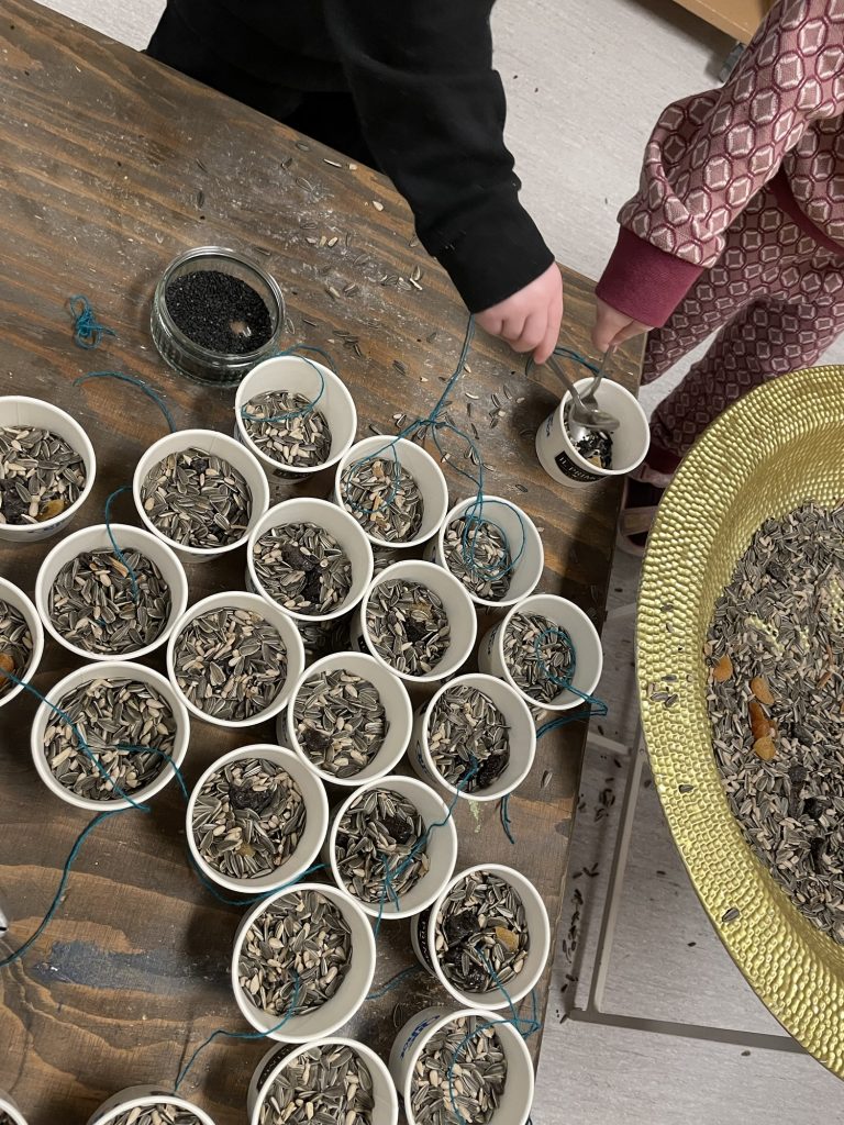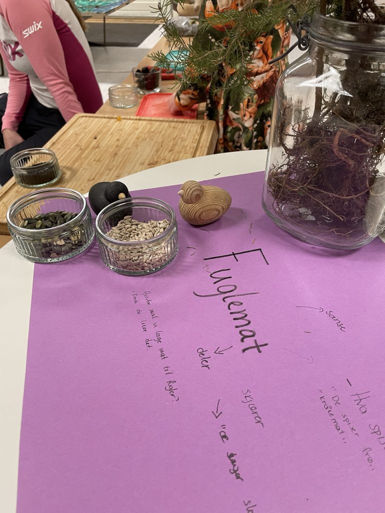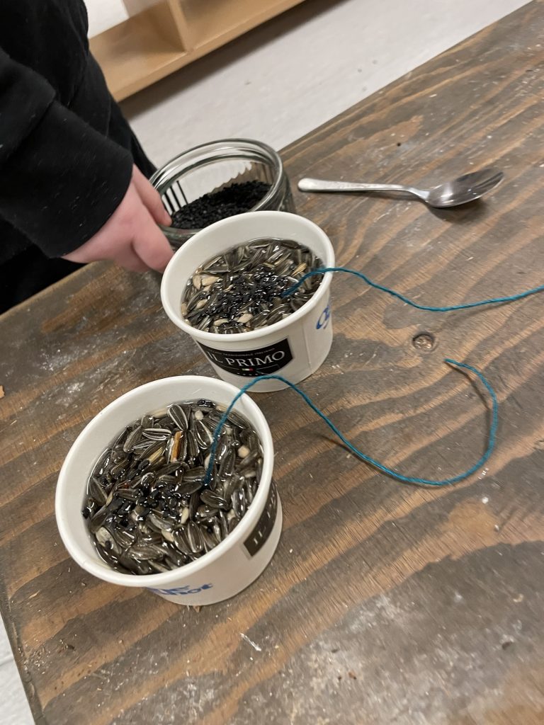 Nå må vi vente til fettet har stivnet før vi får henge fuglemat opp.