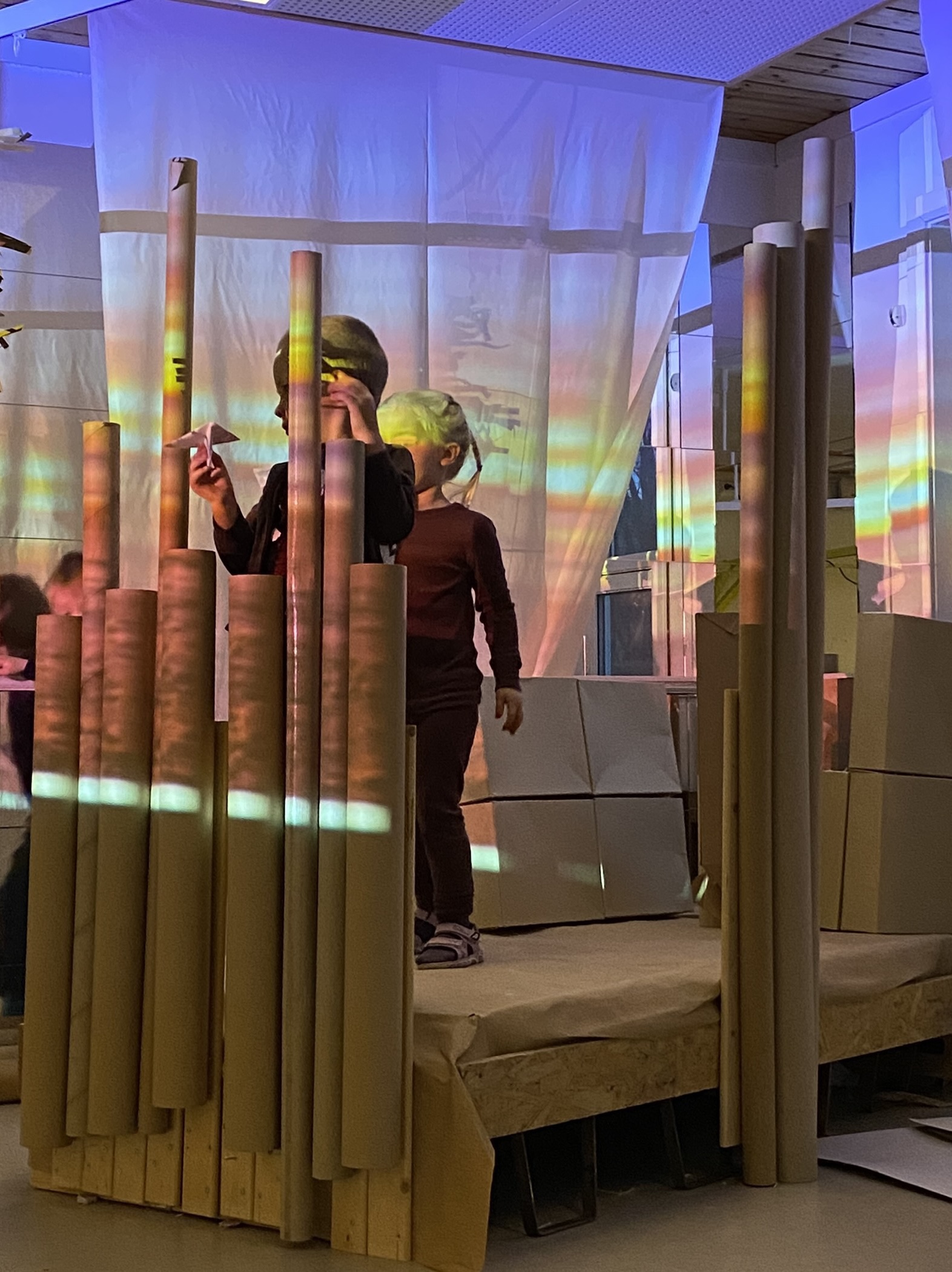 Et par papirfly på starten av dagen utviklet seg til å bli en felles aktivitet. Møteplassen på scenen fikk en ny rolle i leken.