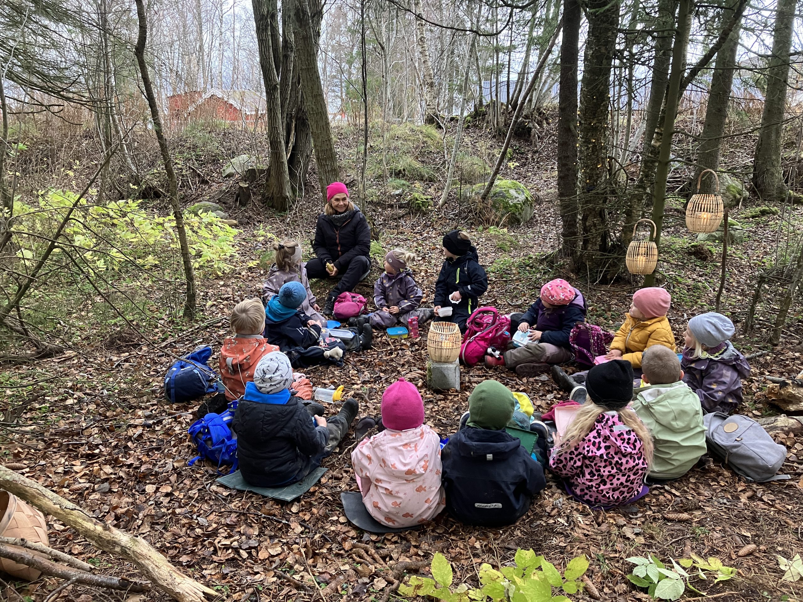 Ut grinda, forbi parkeringsplassen, over fotgjengerfeltet og oppover Vikhammermoveien. Inn mot gården Øfsti og vi tar en liten fruktpause i skogholtet mens vi venter på de siste vennene som kommer til barnehagen. Gjennom Øfstigården og ut på veien mellom jordene. Gjørme, gress, rester av kornstrå. Spor av traktor. «Det e traktorspor her». «Også e det […]