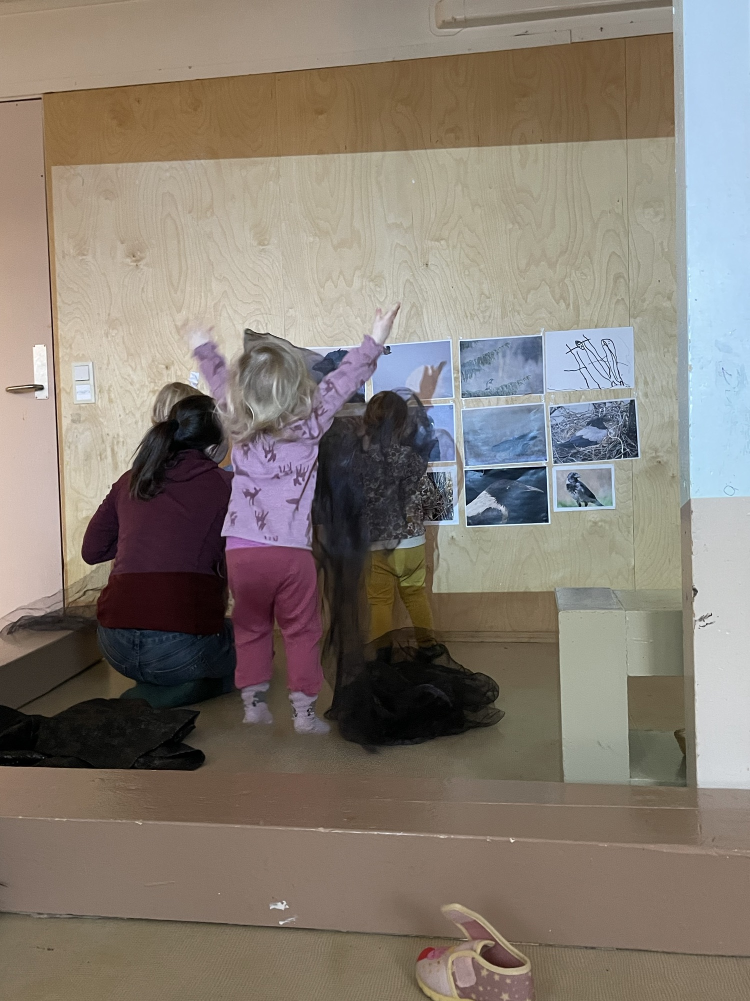 I rommet er det dekket med svart gjennomsiktig tyll, lys fra projektor og instrumental musikk som støtte til bevegelsen.En liten flokk er invitert inn denne morgenstunden, så er vi igang. Et langt tyllstykke blir løftet opp og lagt over armene. Tyllet blir som en forlengelse av armen som strekker seg og forvandler henne til ei […]