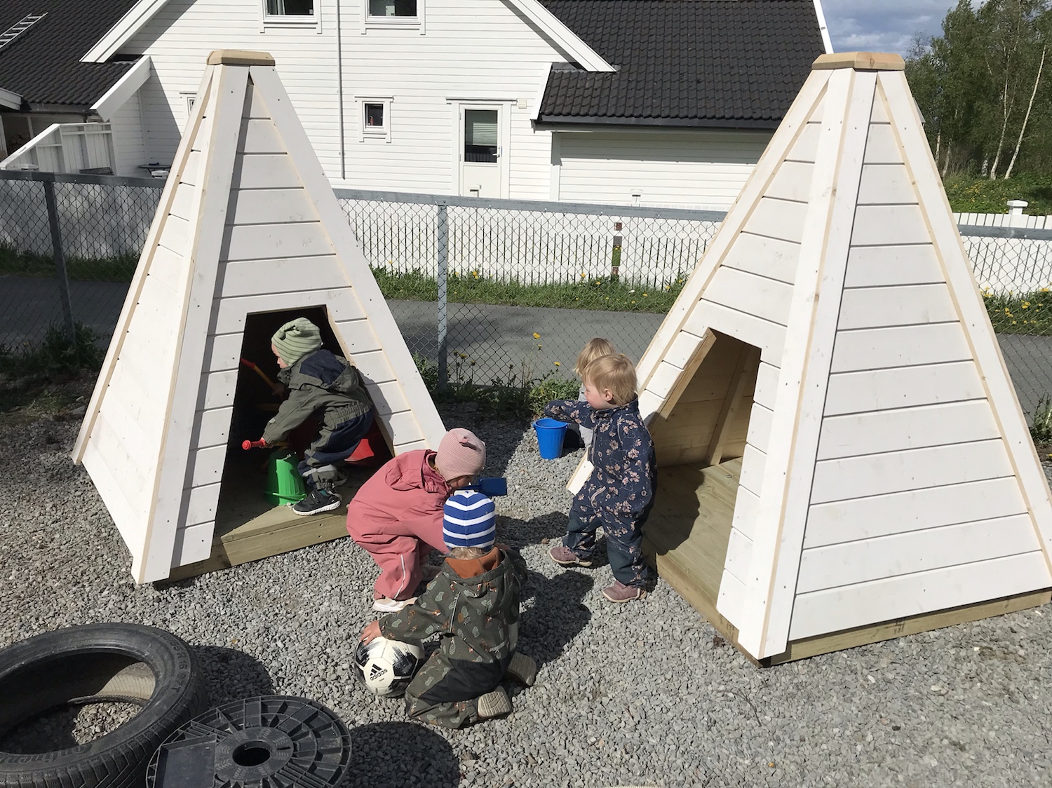 De nye tipiene utforskes av barna på Stjerne. Tusen takk til dugnadsgjengen.